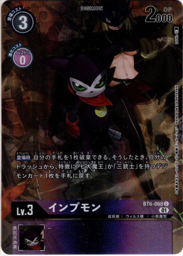 【パラレル】インプモン[DC_BT6-068U] 【パラレル】インプモン[DC_BT6-068U] 販売価格: 1,980円(税込) 在庫なし 返品特約に関する重要事項 再入荷 お問い合わせ お気に入り登録 ▼デジモンカード紫LV3