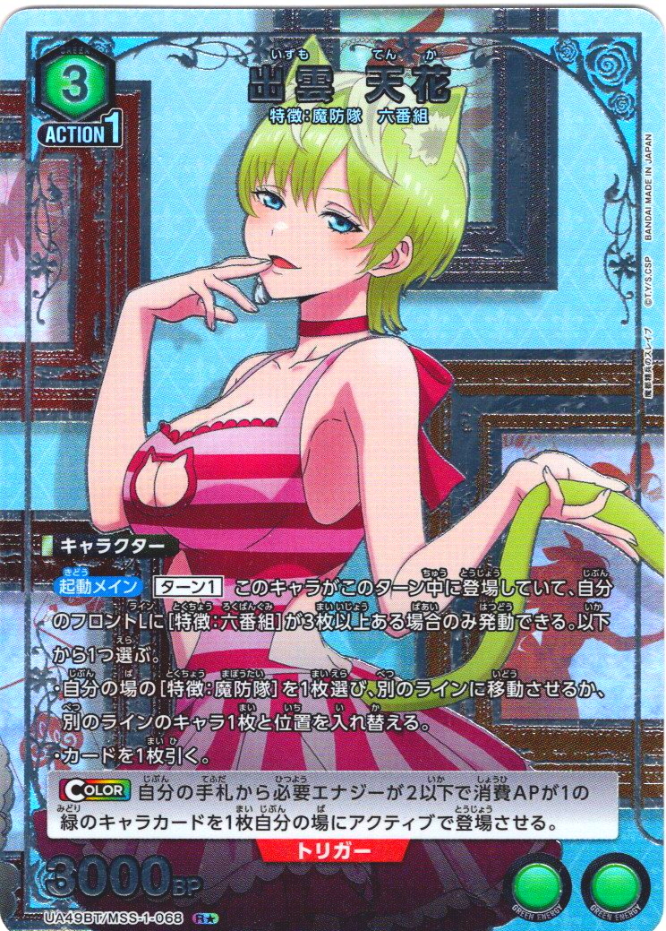 【星1パラレル】出雲 天花[UA_UA49BT/MSS-1-068_R] 【星1パラレル】出雲 天花[UA_UA49BT/MSS-1-068_R] 販売価格: 0円(税込) 在庫なし 返品特約に関する重要事項 再入荷 お問い合わせ お気に入り登録