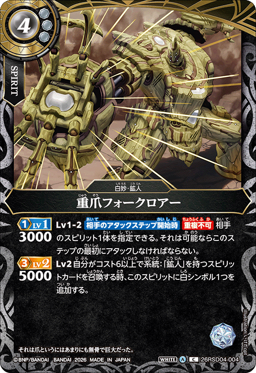 重爪フォークロアー[BS_26RSD04-004_C]【26RSD04収録】 重爪フォークロアー[BS_26RSD04-004_C]【26RSD04収録】 販売価格: 0円(税込) 在庫なし 返品特約に関する重要事項 再入荷 お問い合わせ お気に入り登録